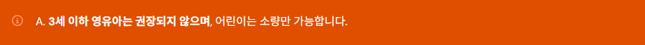 A. 3세 이하 영유아는 권장되지 않으며, 어린이는 소량만 가능합니다.