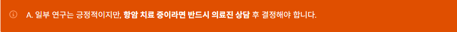 A. 일부 연구는 긍정적이지만, 항암 치료 중이라면 반드시 의료진 상담 후 결정해야 합니다.
